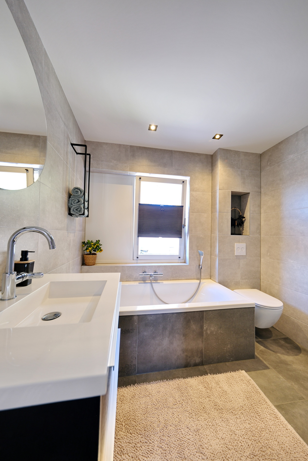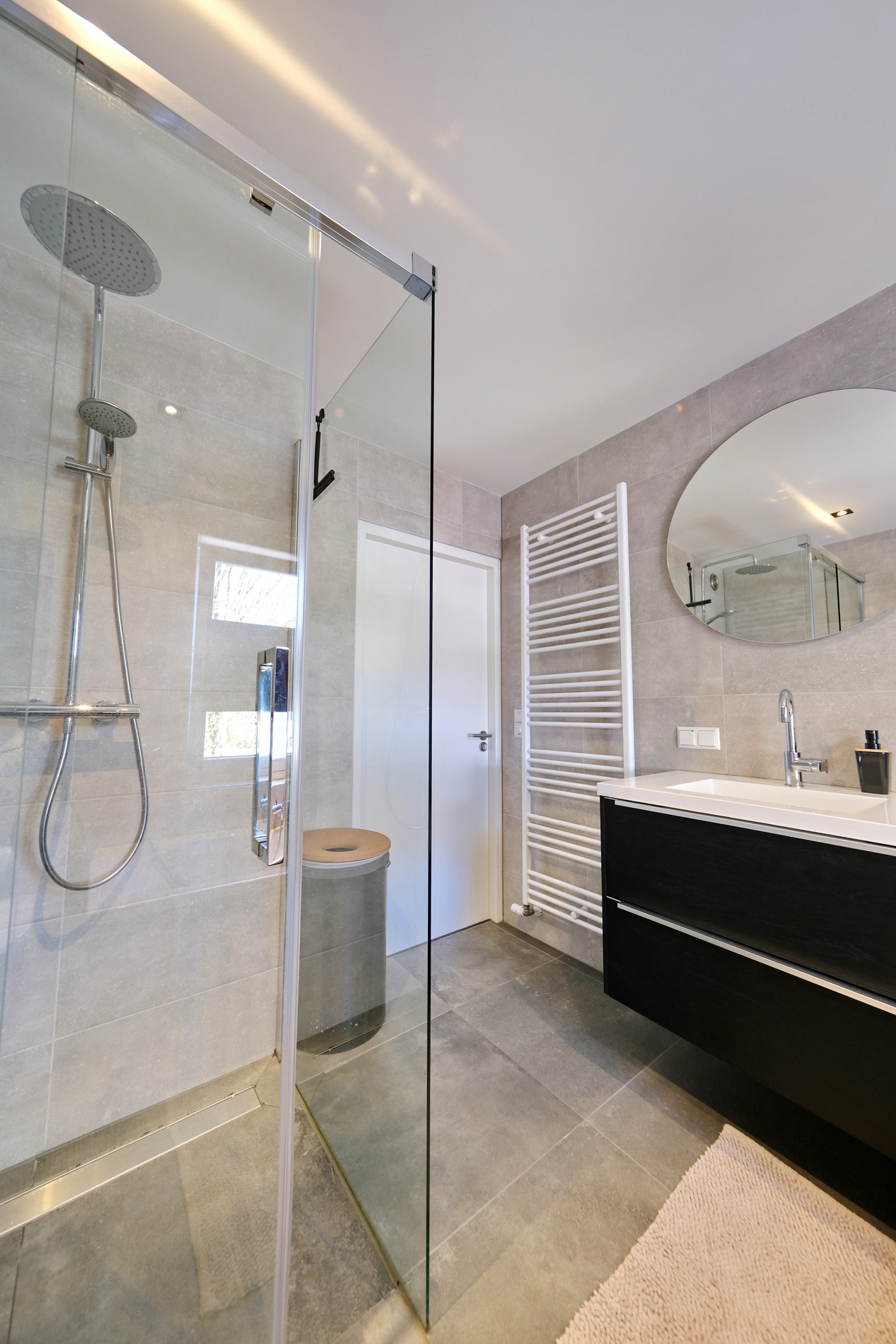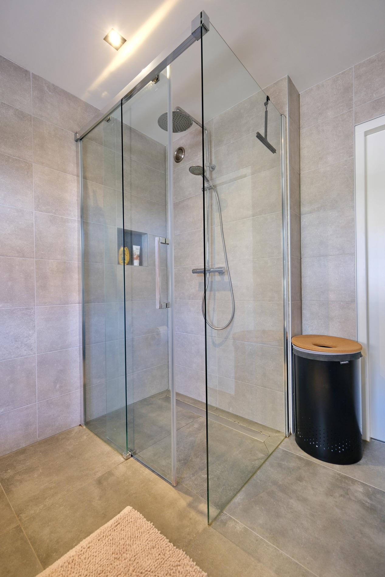De badkamer is in 2021 vernieuwd en compleet uitgerust met een inloopdouche, ligbad, een wastafelmeubel en toilet. Mechanische ventilatie en een raam dat zorgt voor frisse lucht en daglicht.