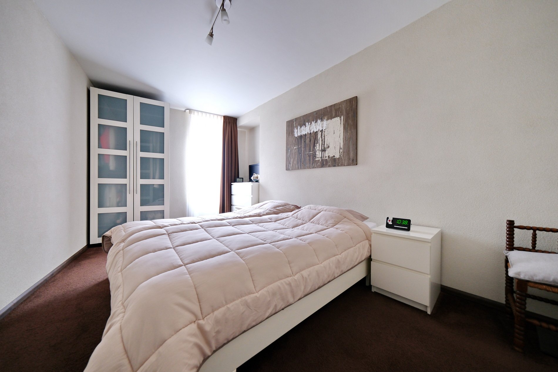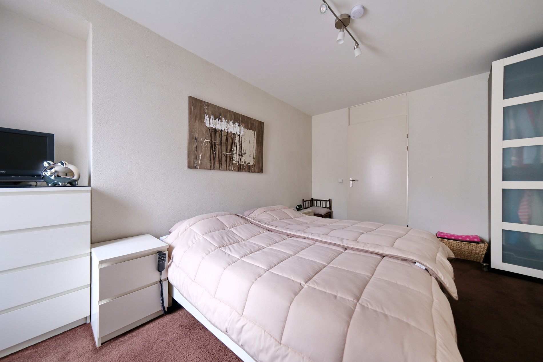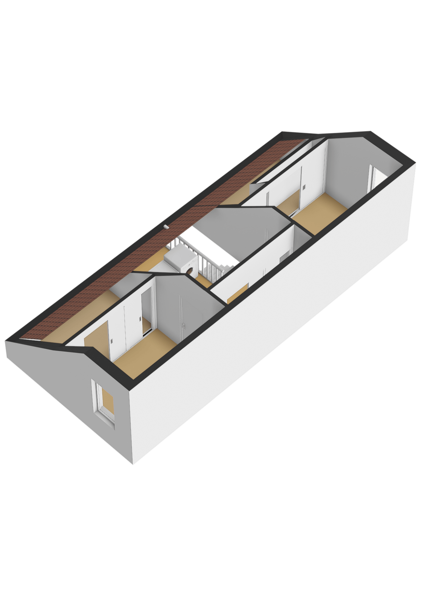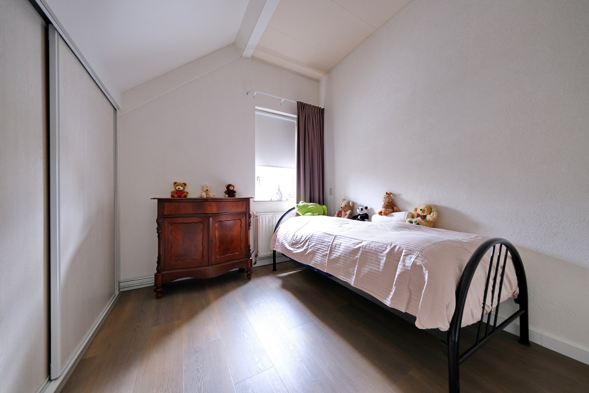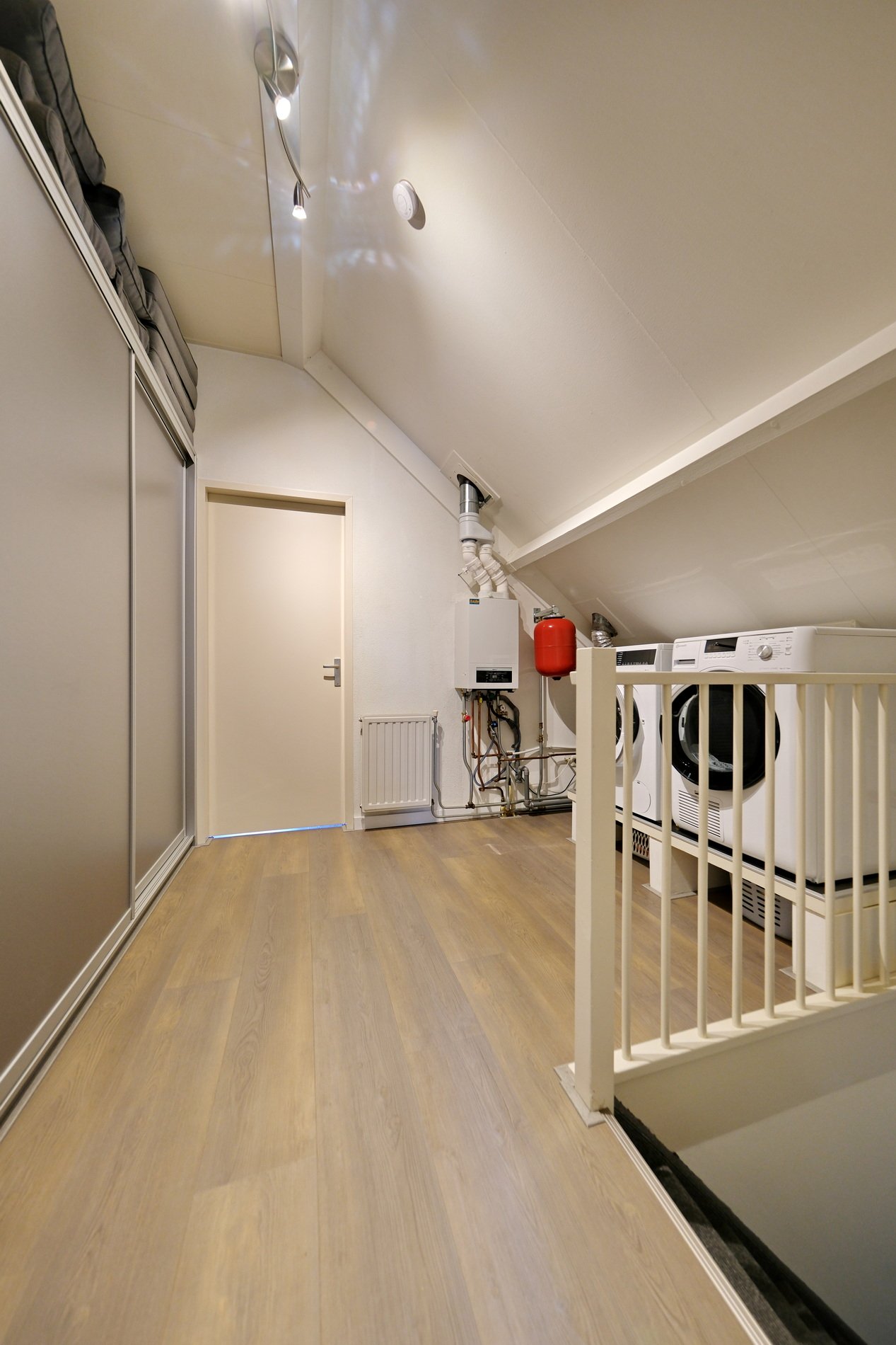 Ruime overloop met aansluitingen voor wasapparatuur, CV-ketel en veel bergruimte in en op de grote schuifkast. Op deze verdieping bevinden zich twee mooie slaapkamers met een PVC vloer, waarvan 1 met een kast en veel bergruimte.