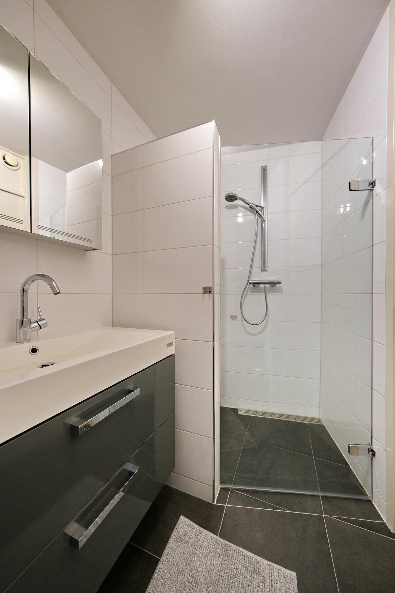 Op de begane grond bevindt zich tevens een slaapkamer met een badkamer die in 2009 is vernieuwd. Deze ruimte is ingericht met een inloopdouche, wastafelmeubel n ligbad. Tevens mechanische ventilatie en vloerverwarming, wat zorgt voor extra comfort.