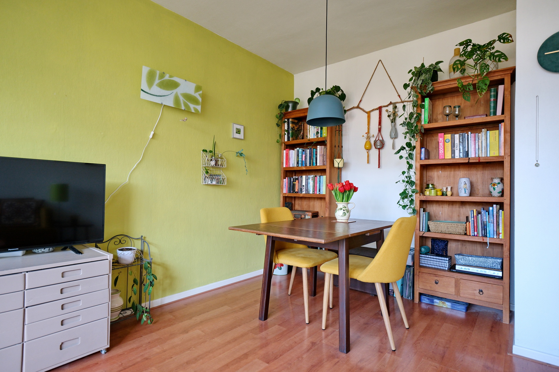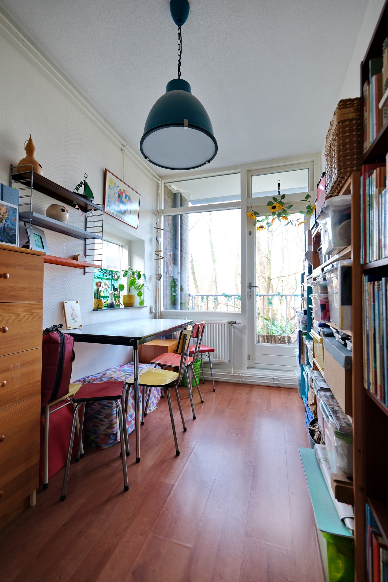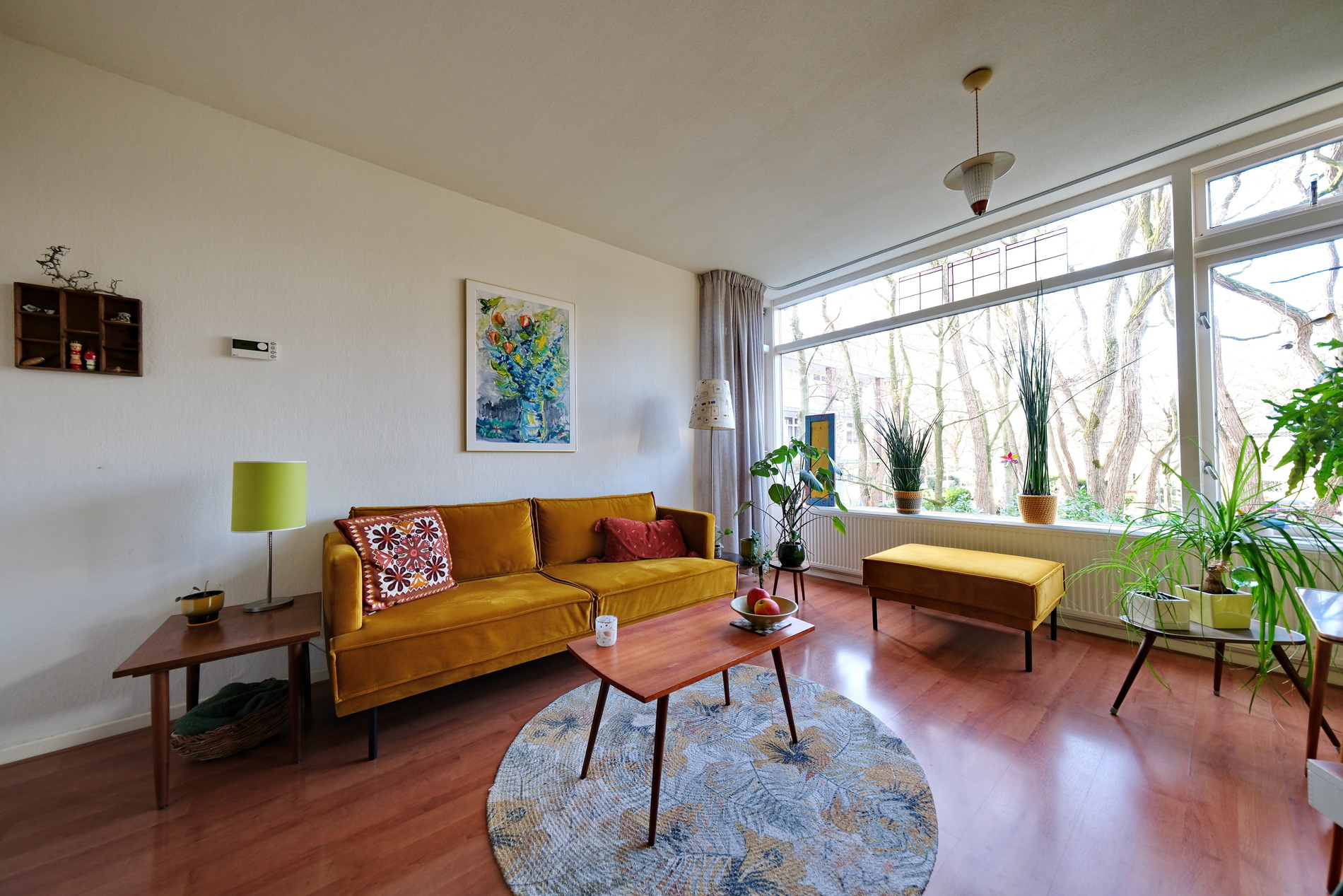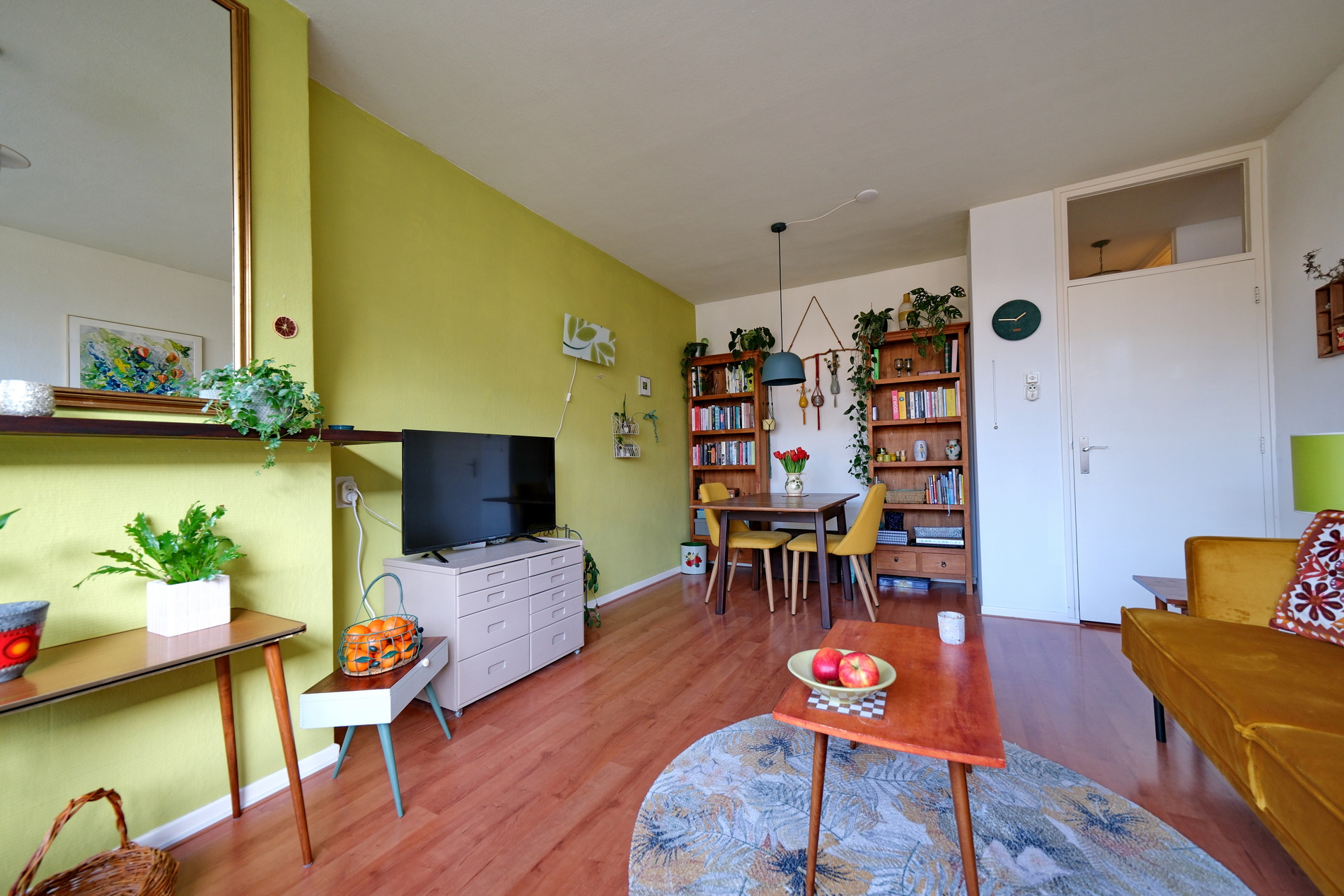De lichte en gezellige woonkamer kijkt uit op het groen en biedt toegang tot het zonnige balkon op het westen perfect voor een kop koffie na het werk of een ontspannen avond in de zon.
