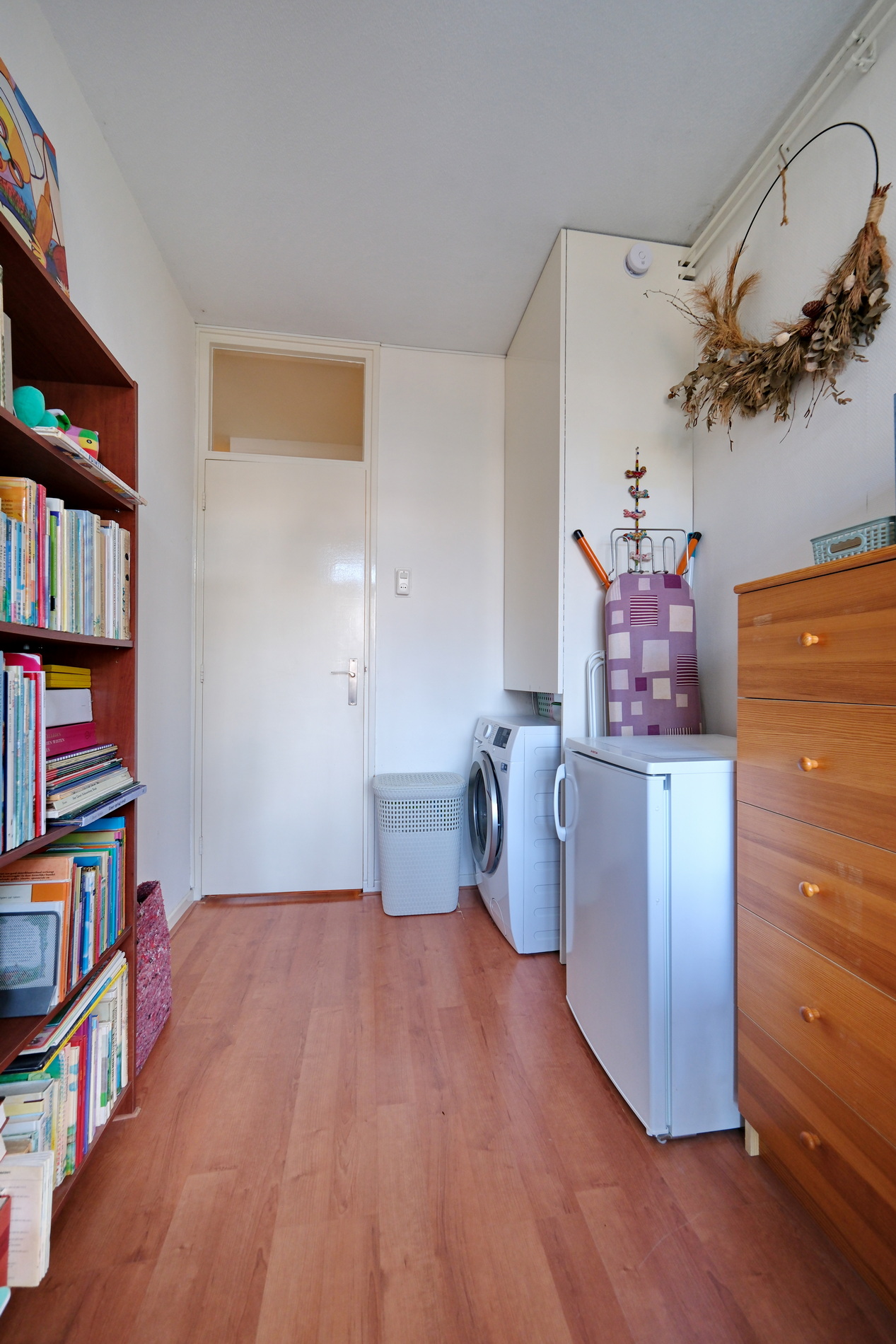 Laminaatvloeren in woonkamer, keuken, slaapkamers en hal;