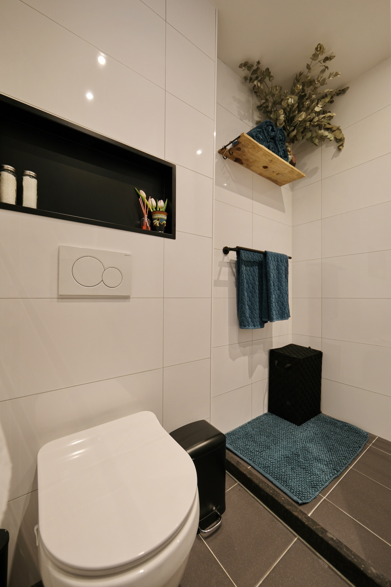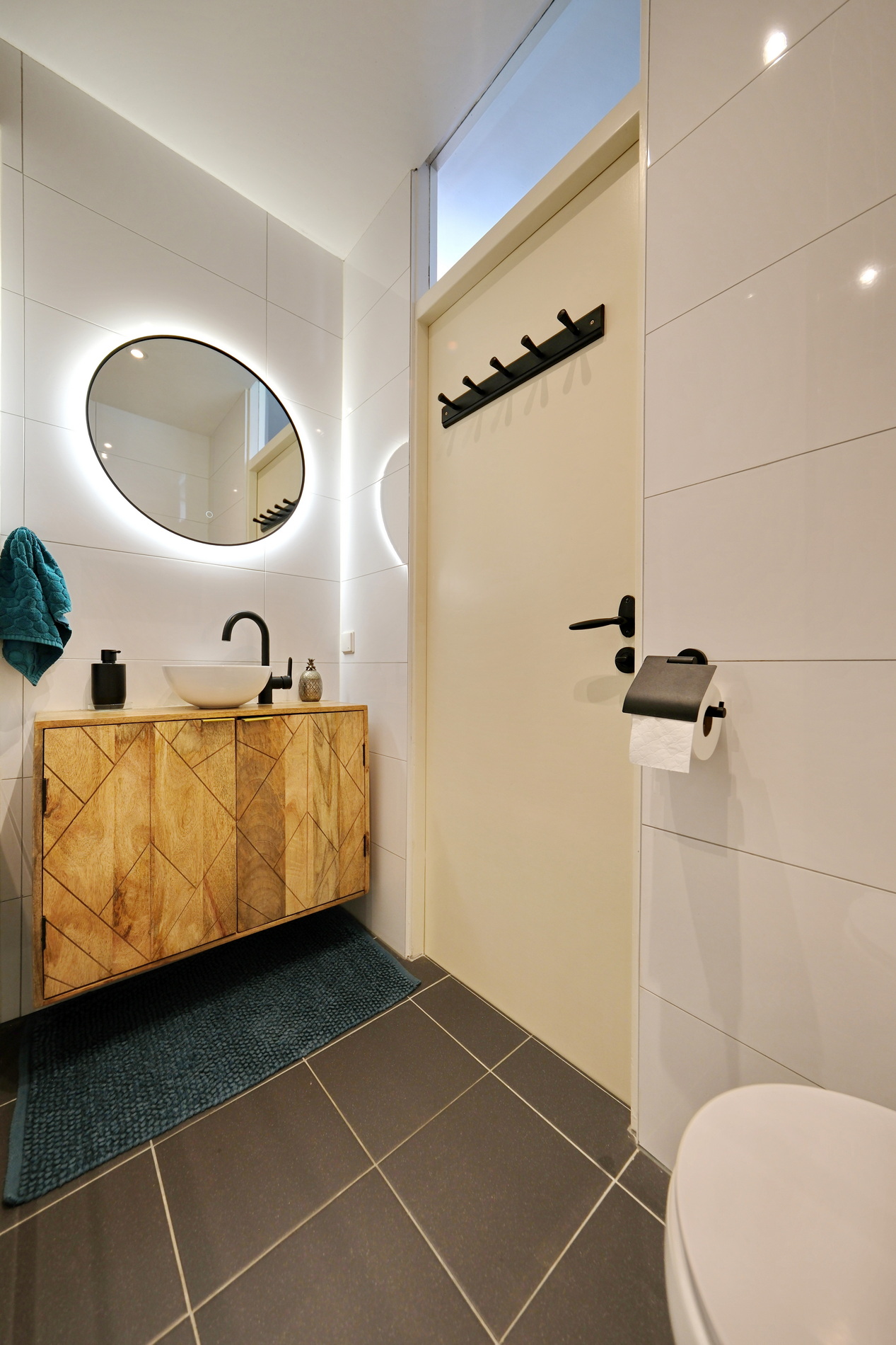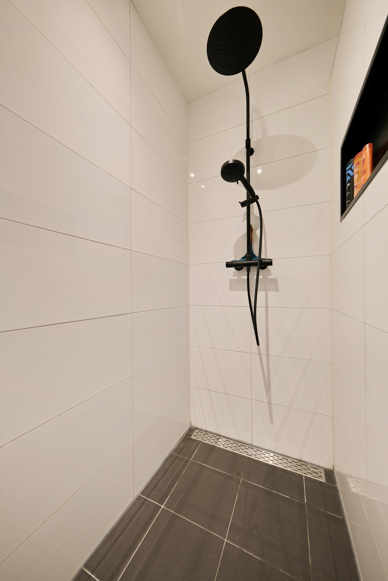 De badkamer is in 2021 vernieuwd en ingericht met een inloopdouche, wastafelmeubel en toilet. Deze ruimte heeft vloerverwarming en in het plafond zijn inbouwspots verwerkt.