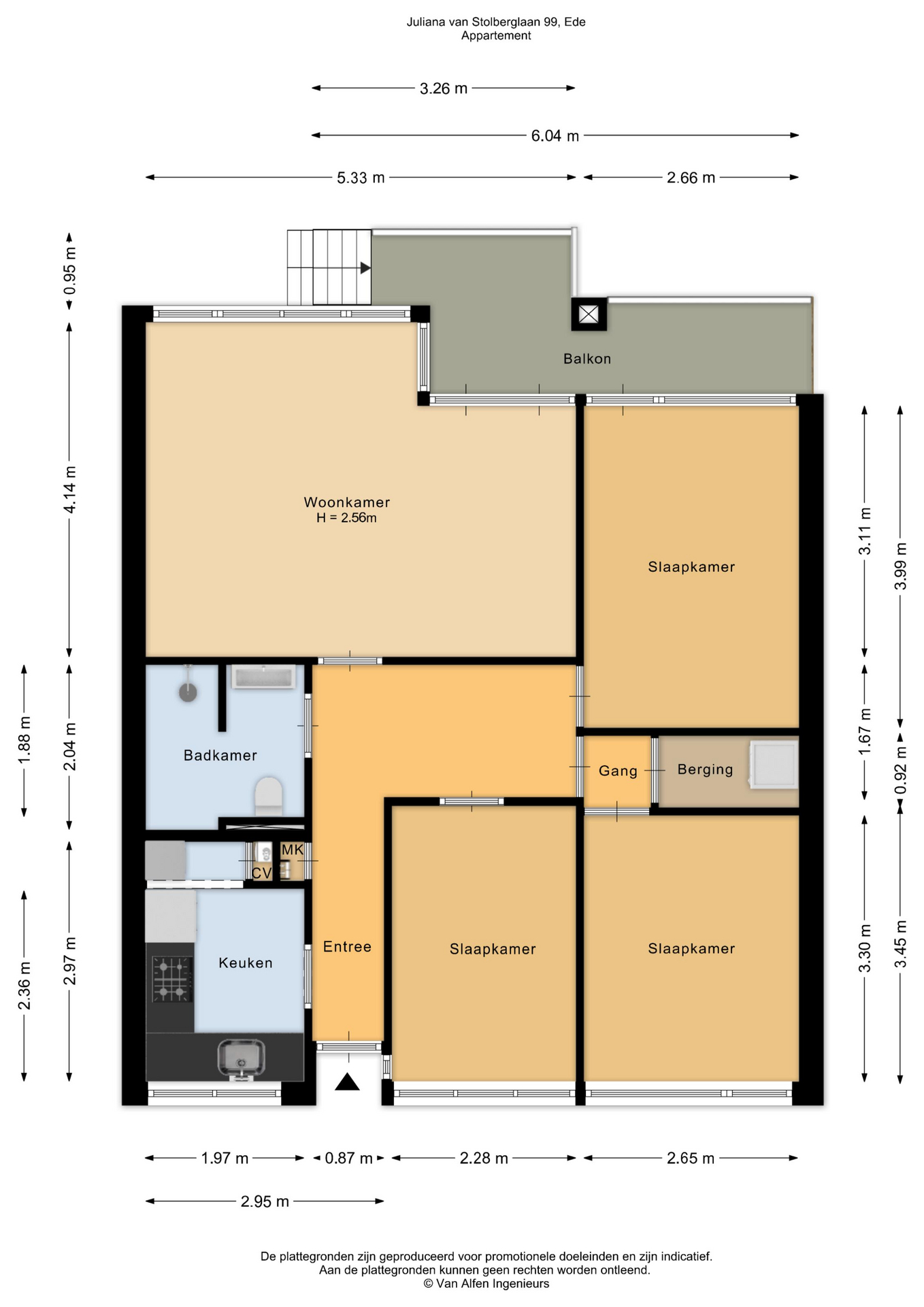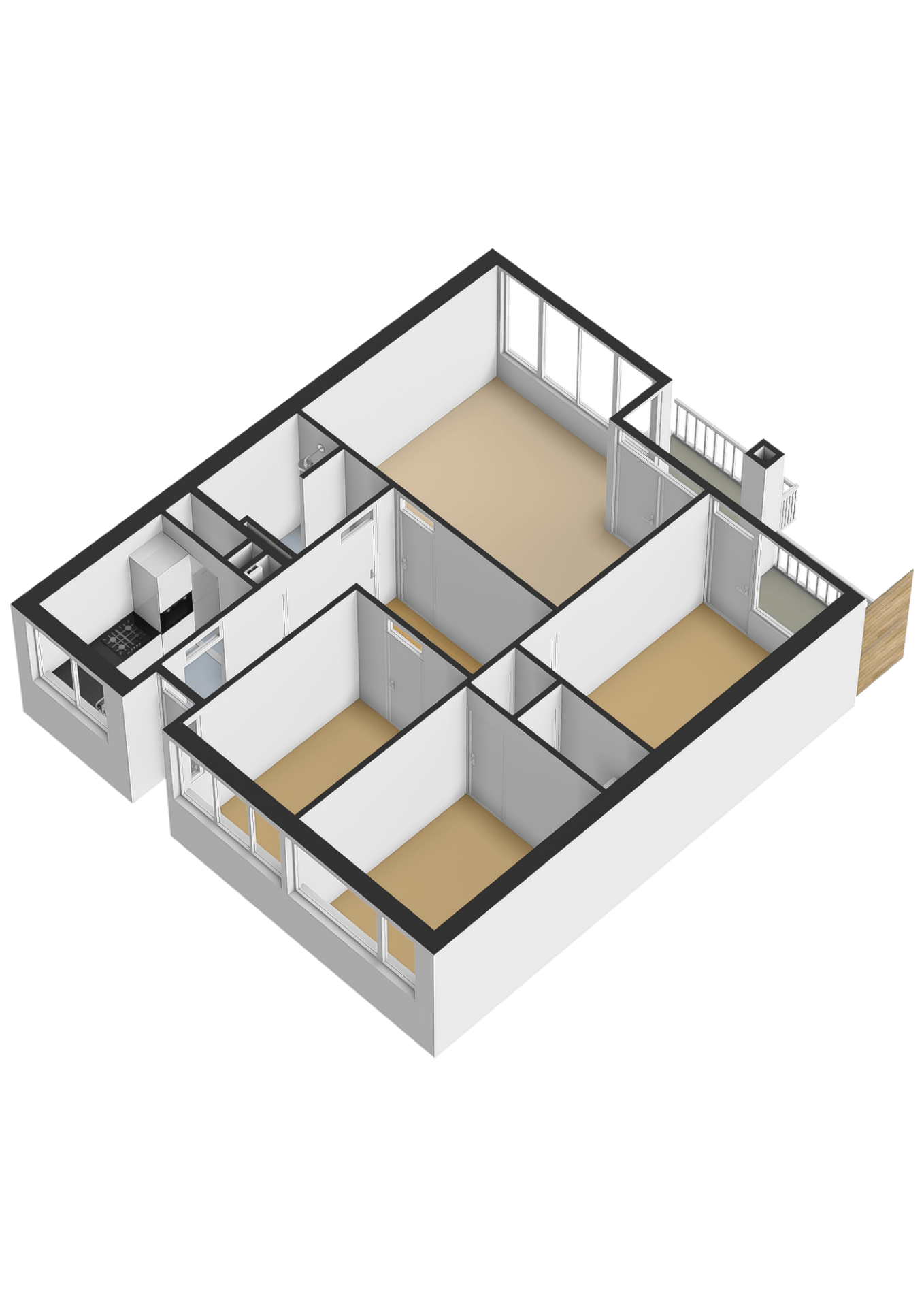 3 slaapkamers van mooi formaat waarvan 2 kamers aan de galerijzijde en 1 aan de balkonkant.