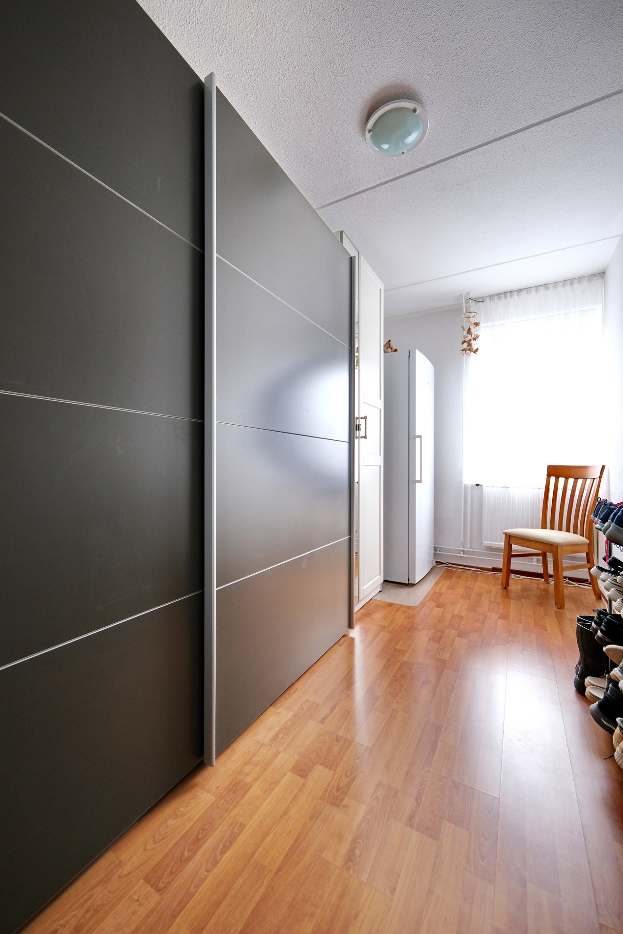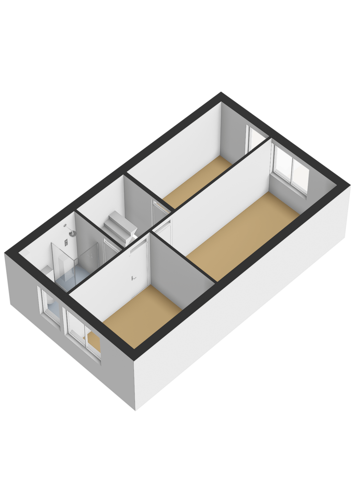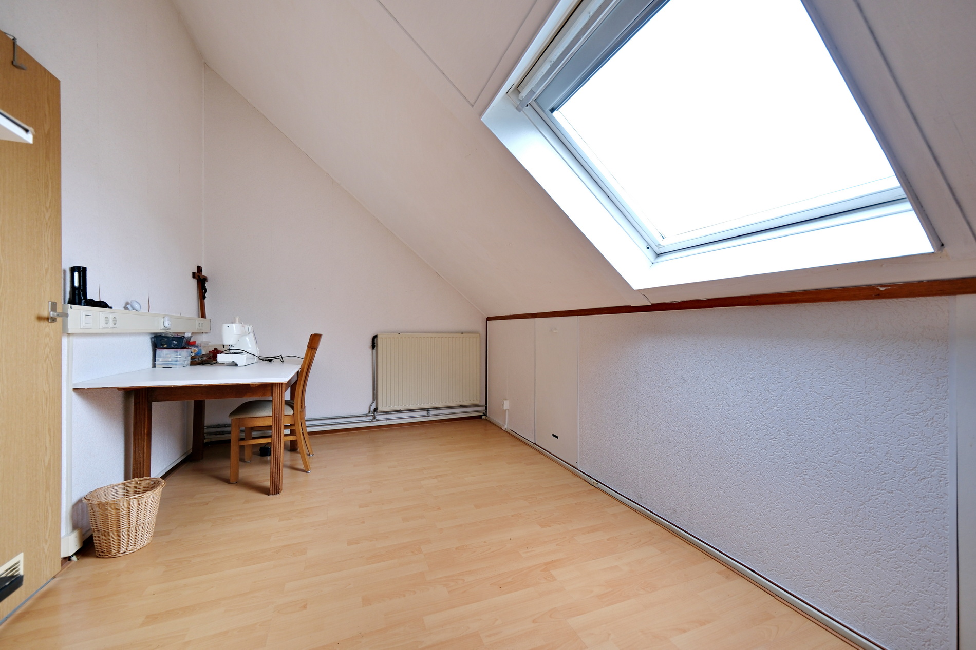 2 slaapkamers aan de achterzijde, 1 aan de voorkant en allemaal met rechte wanden en een laminaatvloer.