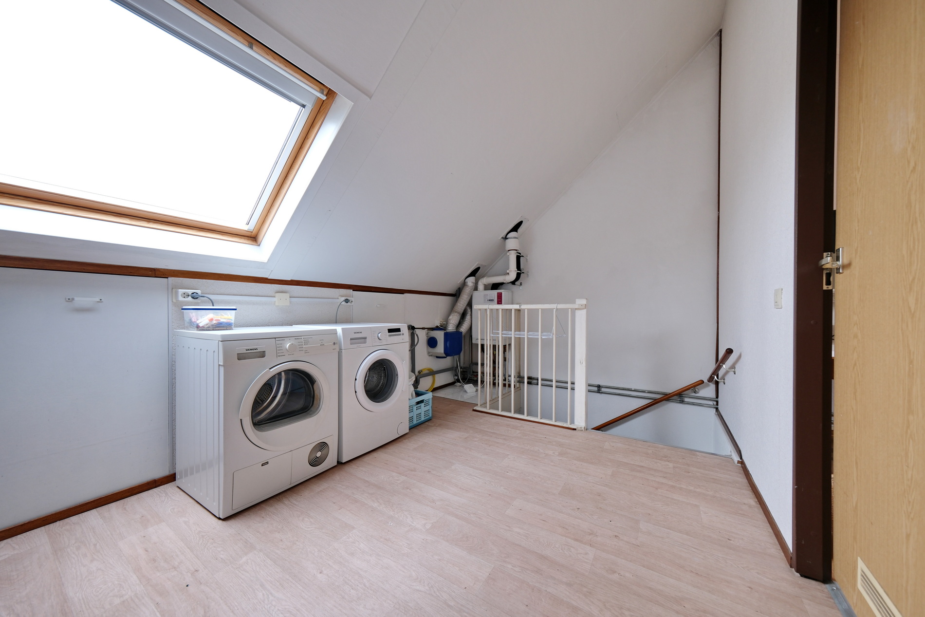 Deze zolderverdieping is verdeeld in 2 mooie ruimtes. De zolderkamer is een goede 4e slaapkamer met een groot dakraam en berging achter de knieschotten. Op de voorzolder vind je een aansluiting voor wasapparatuur, de CV-ketel en bergruimte.