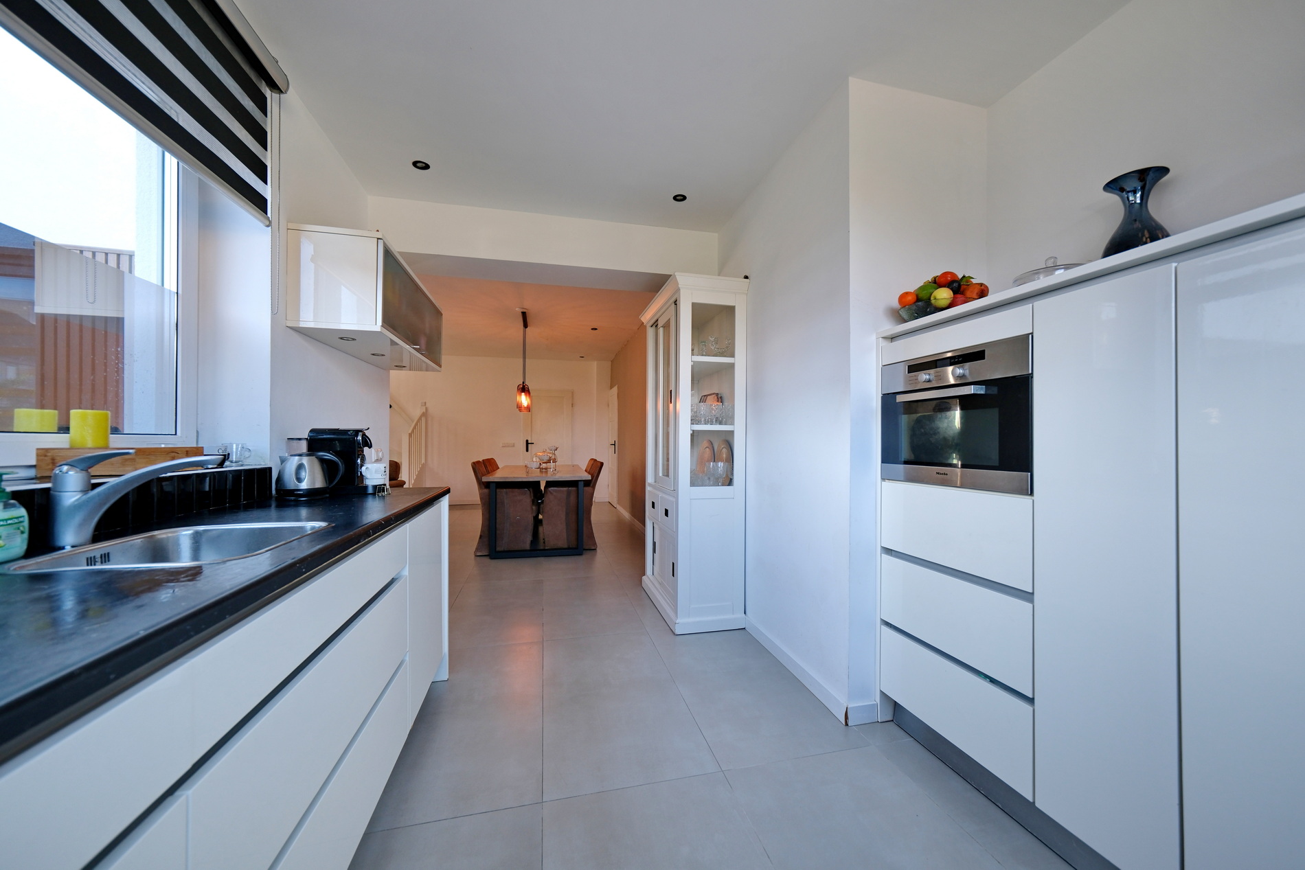 Bij binnenkomst vind je een ruime hal met toilet en toegang tot de lichte woonkamer met open keuken. Vanuit elk raam heb je een ander uitzicht: op straat, in de tuin of over het parkje. De gehele begane grond is voorzien van comfortabele vloerverwarming.